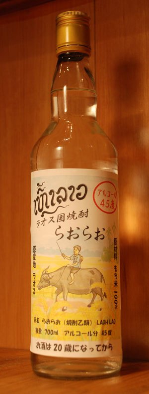 この酒は「らおらお」という商品名のようですがラオスでは米から造った蒸留酒をラオスの酒という意味で「ラオラーオ」と呼ぶようです。ちなみに「ラオ」が酒で、「ラーオ」がラオスという意なのだそうです。